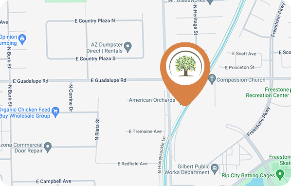 We are located in the heart of Gilbert, on the Southwest corner of Lindsay Road and Guadalupe Road.